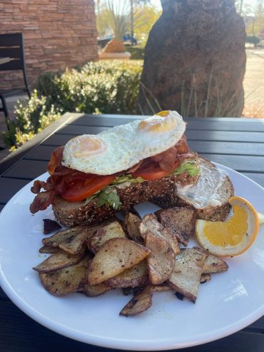 2 Eggs Any Style, Choice of Bread, Bacon, Romaine Lettuce, Tomato, Herb Mayo, House Potatoes