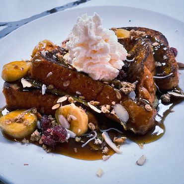 Bananas Flambe, Caramel, Granola, Mascarpone Whip